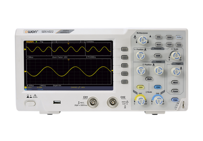 OWON SDS1022 Digital Storage Oscilloscope offers 20 MHz bandwidth and 100 MSa/s sampling across 2 channels. Featuring a 7" color TFT display, FFT, math functions, and 30 auto- easurements, it ensures accurate waveform analysis. Lightweight and USB-enabled, it’s the ideal affordable oscilloscope for education, labs, and electronics testing.