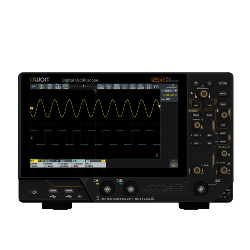 The ADS3202A stands out as an ideal choice for engineers, educators, and electronics professionals who demand accuracy, flexibility, and ease of use. Its 12-bit high-resolution ADC provides up to 16× more detail than standard 8-bit oscilloscopes, ensuring precise signal capture even in sensitive measurements. With a 200 MHz bandwidth, 2.5 GSa/s sampling, and 100 Mpts memory depth, it delivers reliable performance for both everyday debugging and advanced analysis.
