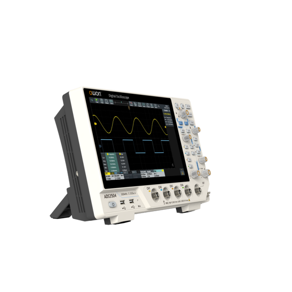 The ADS3104 is a 4-channel, 12-bit digital storage oscilloscope designed to deliver high precision and reliability for modern electronics testing. With a bandwidth of 100 MHz, a 1 GSa/s real-time sampling rate, and up to 125 Mpts of memory depth, it provides engineers, researchers, and educators with the tools needed to capture even the most demanding waveforms in detail. Its large HD capacitive touchscreen display, combined with an intuitive Android-based interface, ensures a smooth user experience, whether in the lab, classroom, or on the production line.