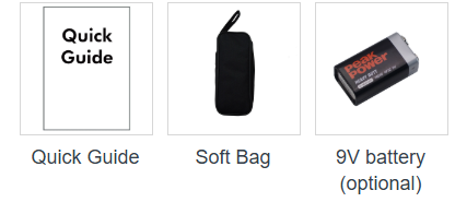 | Power supply | 9V (6LR61) Battery (optional) | |