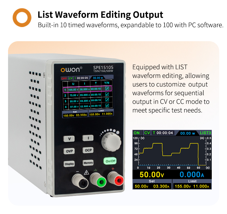 OWON SPE15054 Programmable DC Power Supply – 150V / 5A / 450W High Precision Laboratory Power Supply